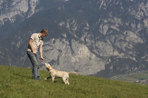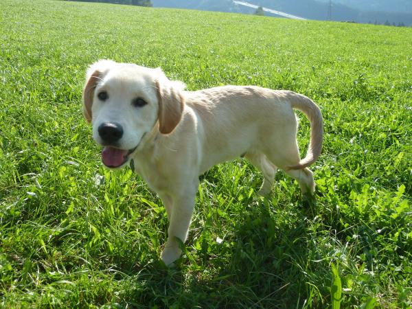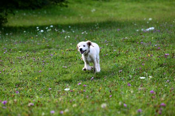 Auf der Wiese spielen macht Spass. Auch wenn man danach Grasflecken im Fell hat.